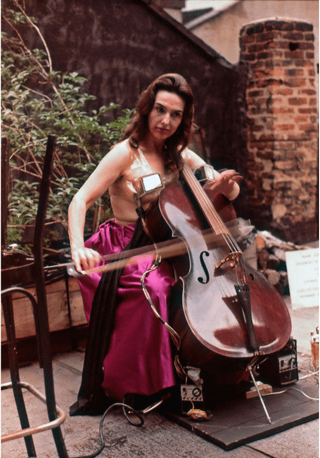 Topless Cellist, dir. by Nam June Paik and Howard Weinberg, 1995 [Youtube: https://www.youtube.com/watch?v=2aeH9FdtAqY]