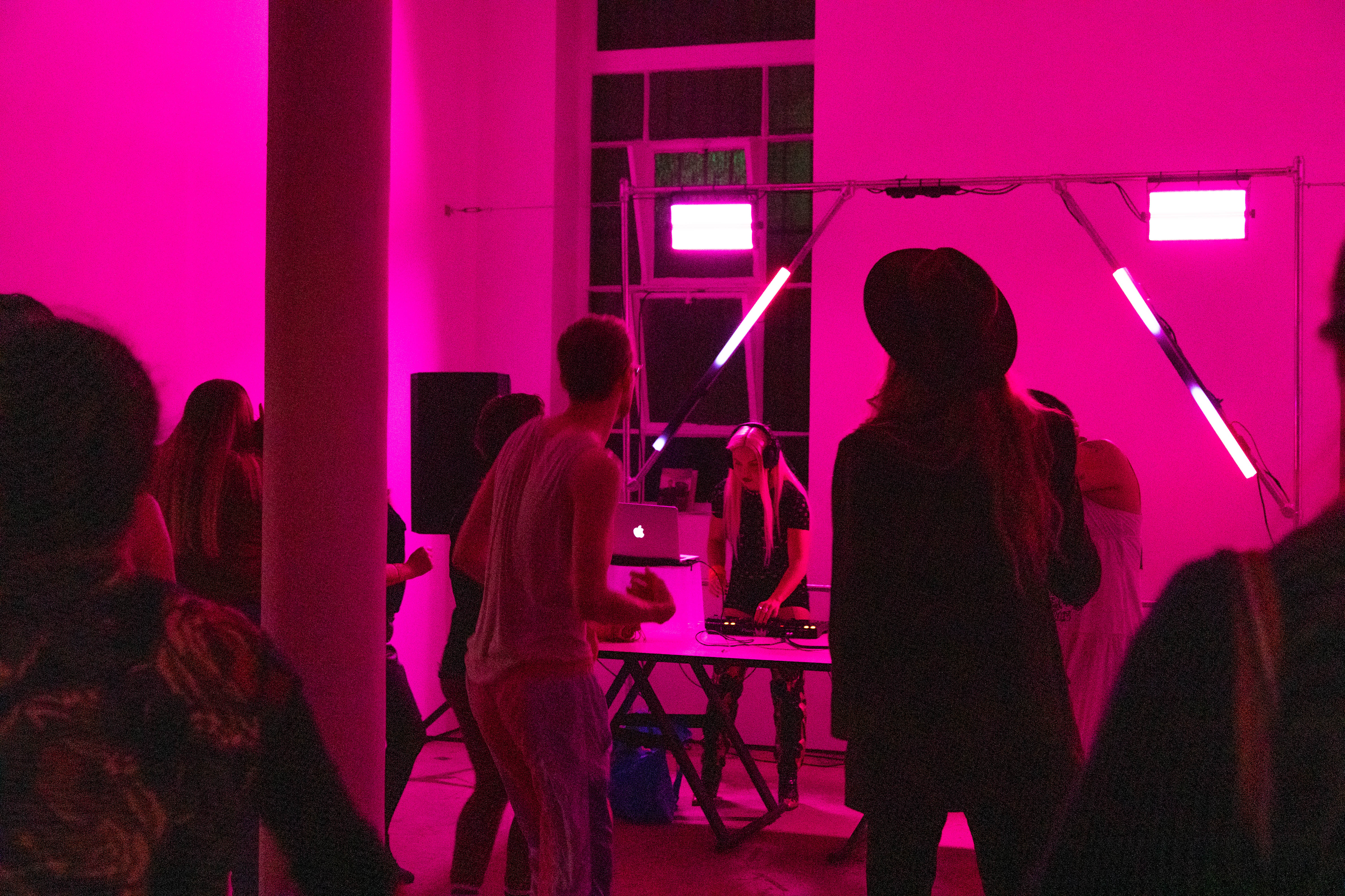 The day is coming to an end. The ground-floor space has been cleared. Matt Woodham has rigged some lights and DJ FEMINEM has started to play. It’s cold – we’re now definitely past summer – but as I dance I begin to strip off layers of clothes. After months of lockdown, I’ve yearned for this. I’m grinning, sweating, weaving through the space, bouncing between friends and strangers. I imagine a flow of energy vibrating from the bodies in the room, into the walls and floor, back into the people, past and present and future.